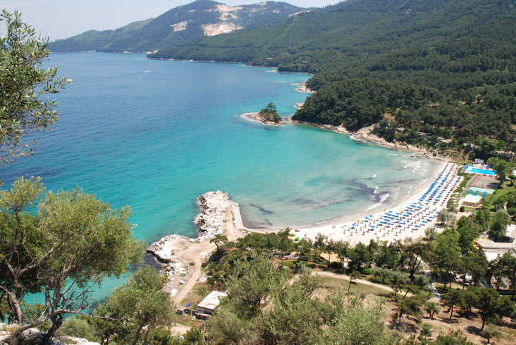 To νησί σε όλη του την έκταση έχει ακτές, όπως τη Χρυσή Αμμουδιά στη Σκάλα Παναγιάς, τη Χρυσή Ακτή στη Σκάλα Ποταμιάς, τα Κοίνυρα, ο Παράδεισος, τη Θημωνιά, την Αλυκή, την Ψιλή Άμμο, το Αστρίς, την Ακτή του Ποτού, το Πευκάρι, την Ακτή Λιμεναριων μέχρι την Τρυπητή, τον Ατσαπά στην Σκάλα Μαριών, την Ακτή Καλλιράχης, την Ακτή Σωτήρας, την Ακτή Αλσυλλίου (Δασύλιο) στην Σκάλα Πρίνου, τη Σκάλα Ραχωνίου, τον Παχύ, το Παπαλιμάνι, τη Γλυφάδα και στην πόλη της Θάσου την Ακτή Αγίου Βασιλείου, την παραλία (συνοικισμού) στην ανατολική πλευρά της πόλης, το Νυστέρι και το Γλυκάδι (2-3 χλμ. από Λιμένα).